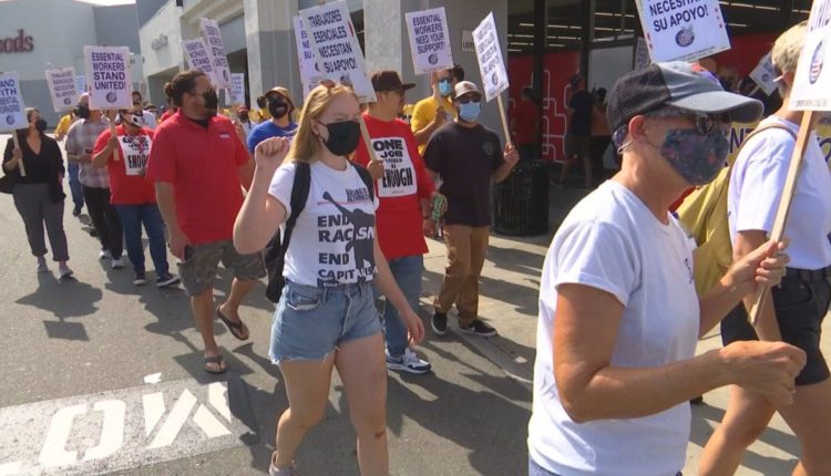 While thousands of San Diegans swarmed to the beach for Labor Day, a few dozen chose to march in front of a CVS in the Midway District to support their fellow workers.