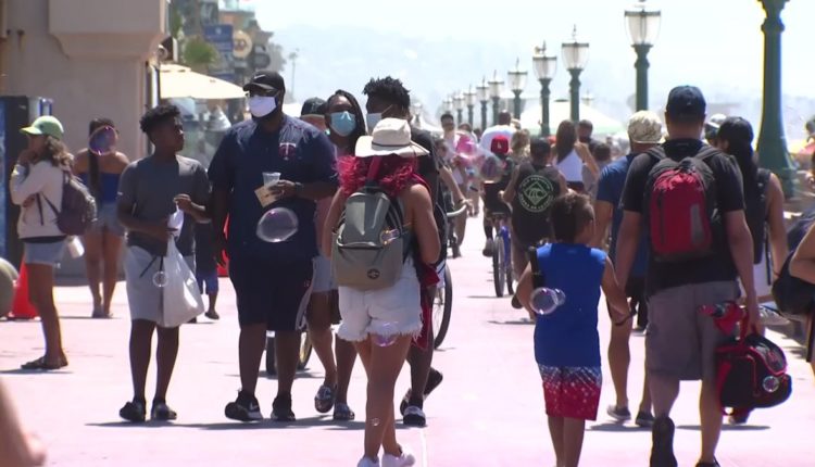 “You just gotta be safe. Wash your hands. Stay clean,” Arizona resident Michelle Lucenia said. She traveled west to San Diego to beat the heat, and also for “the beach, the food and the beer.”