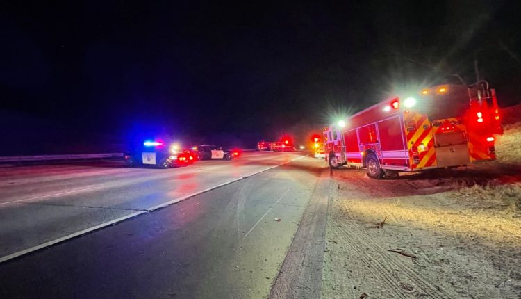 The rollover involving a sedan happened at 3:24 a.m. on I-15 north of Mission Road, according to Capt. John Choi of the North County Fire Protection District.
