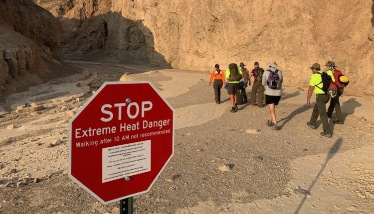 Park rangers urge summer travelers to visit Death Valley safely by hiking only before 10 a.m. or at high elevations, drink plenty of water, eat snacks and stay close to an air-conditioned building or car to cool down.