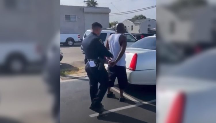 The recording stops and starts again with the bystander’s video as White is placed in handcuffs. The officer is heard telling the driver he is being detained, not arrested.