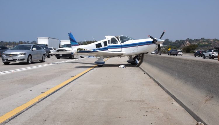 A small airplane made an emergency landing Tuesday on southbound Interstate 5 near Del Mar in San Diego’s North County, causing traffic for motorists confused and stunned by the unexpected sight.